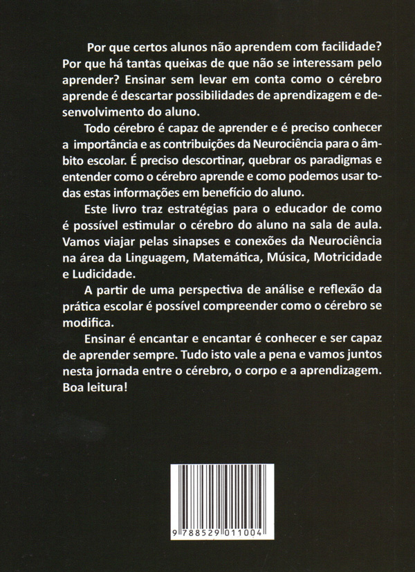 Este livro traz estratégias para o educador de como é possível estimular o cérebro do aluno na sala de aula. Vamos viajar pelas sinapses e conexões da Neurociência na área da Linguagem, Matemática, Música, Motricidade e Ludicidade.